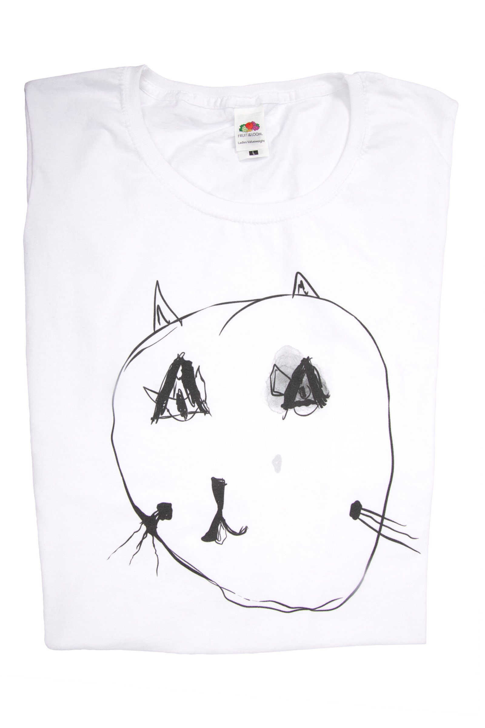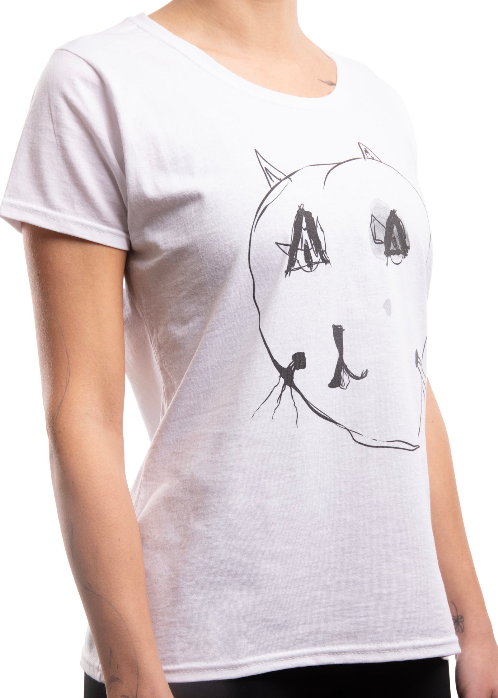 Cica póló – fehér póló, fekete minta – női